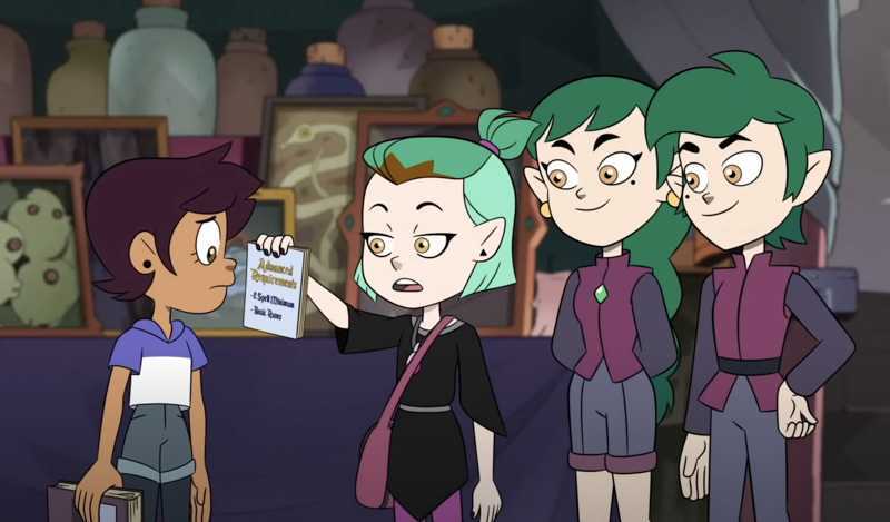 在經歷圖書館的事件後,兩人關係開始升溫。過去的Amity是個對他人漠不關心、鄙視比自己弱小的人,但他關心Luz並提醒他要入學Hexside至少要學會兩種魔法,這貼心的舉動也代表兩人的關係有大的進展。當然, Luz也在最後學成冰系魔法,順利取得入學資格。從這集過後,我們可以肯定的是,Amity完全墜入情網,揮別過去冷冷的女神,整個變成超可愛的小迷妹,這反差我真的超愛XD